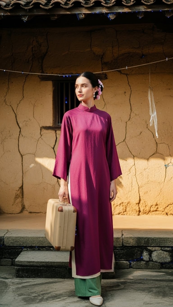 Áo dài tím tằm óng TRALI 25900