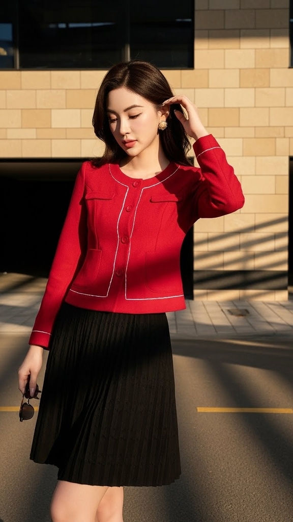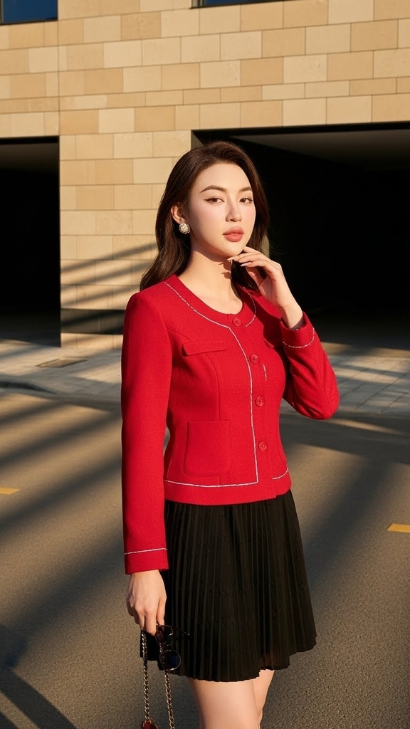 Áo khoác dạ cổ tròn TRALI 25819 màu đỏ Khuyến mại - ưu đãi