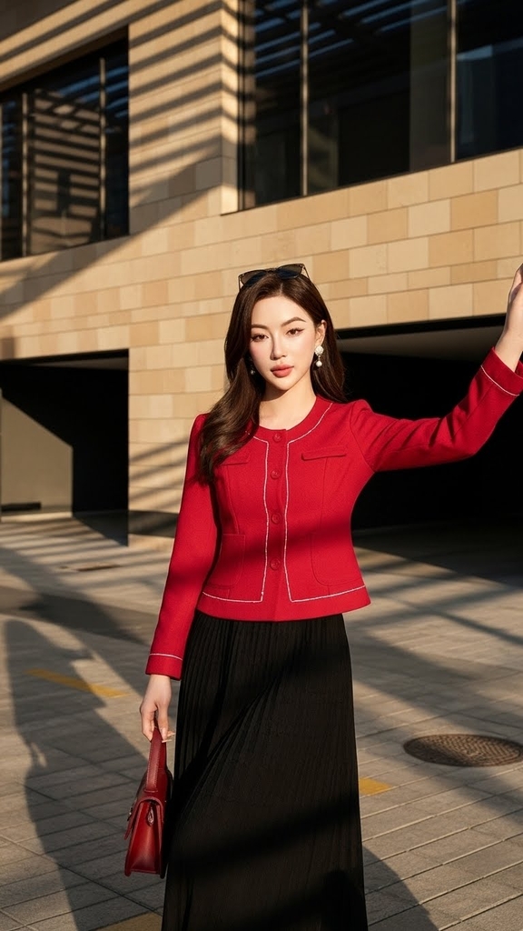 Áo khoác dạ cổ tròn TRALI 25819 màu đỏ