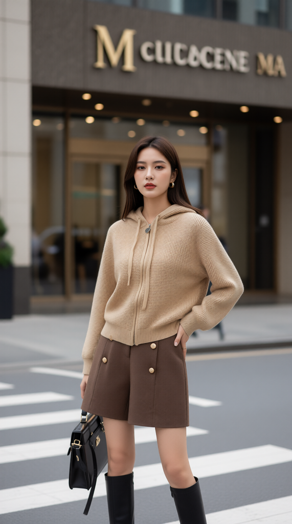 Áo khoác len TRALI 25606 màu nâu Khuyến mại - ưu đãi