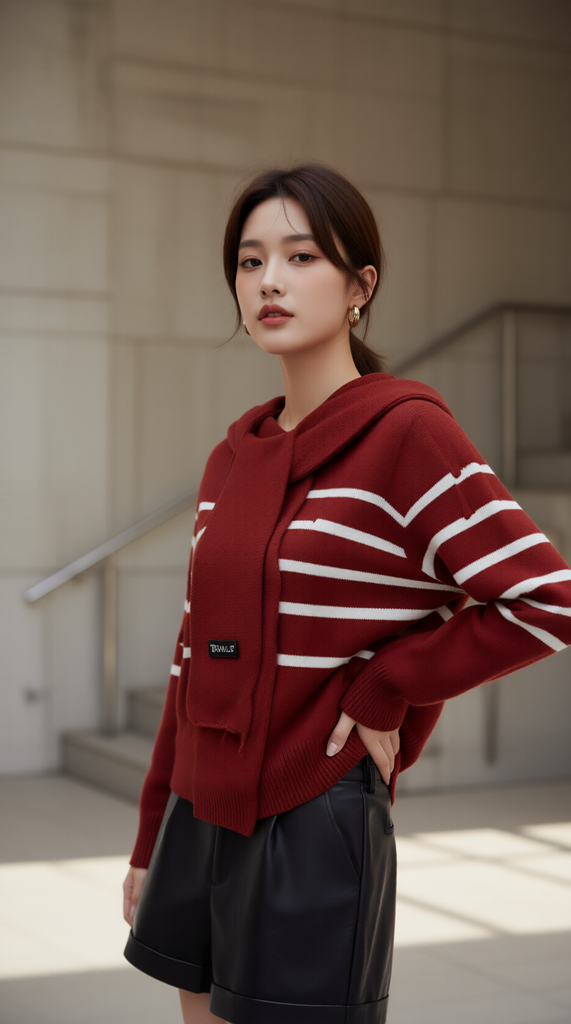 Áo len kèm khăn 25607 đỏ | THỜI TRANG TRALI Áo len kèm khăn 25607 đỏ