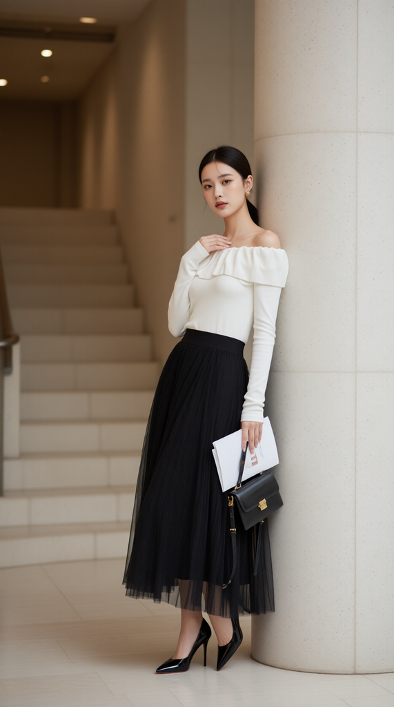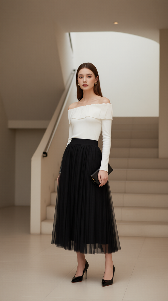 Áo len trễ vai 25608 Kem Khuyến mại - ưu đãi