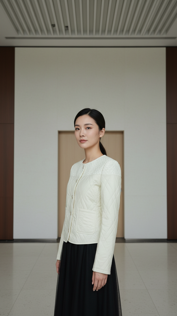 Áo phao phối dạ TRALI 25813 Kem Khuyến mại - ưu đãi