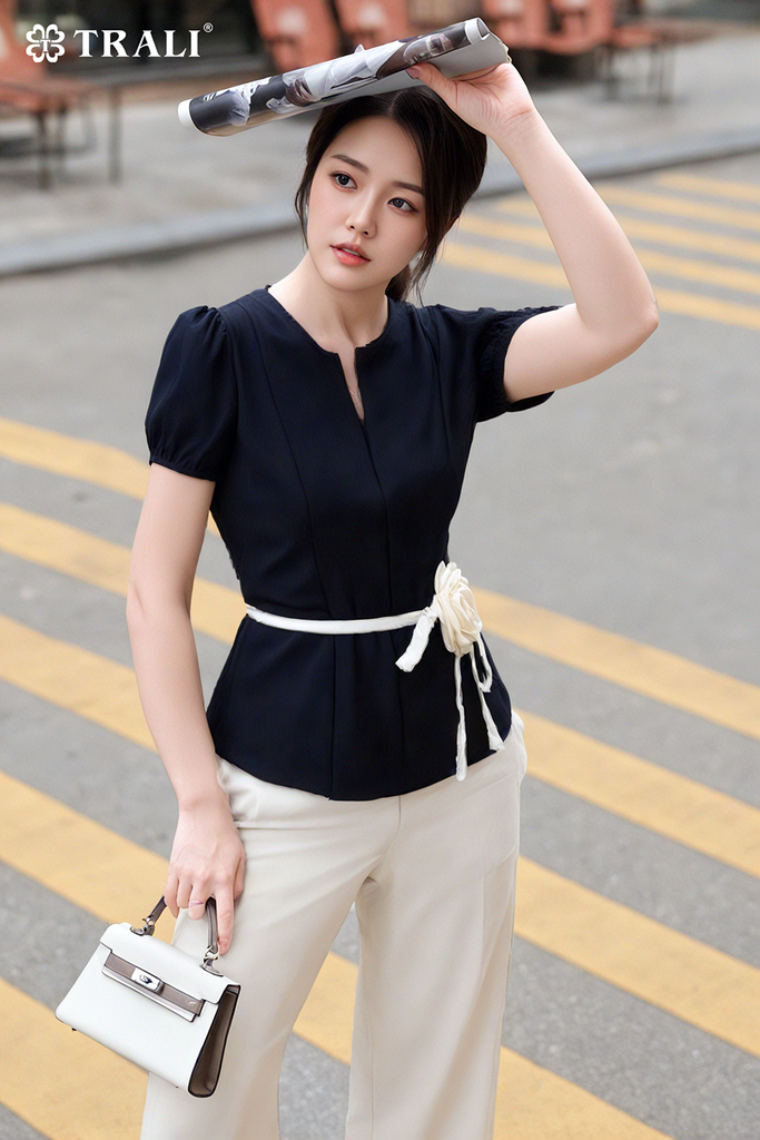 Áo sơ mi nữ TRALI 25134 đen Khuyến mại - ưu đãi