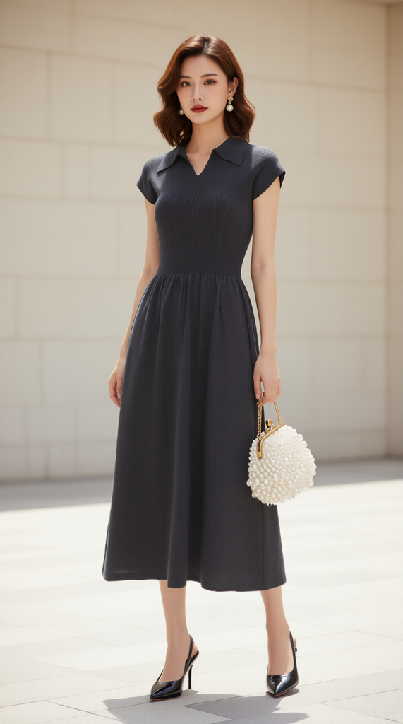 Đầm len xòe 25216 màu xám Khuyến mại - ưu đãi
