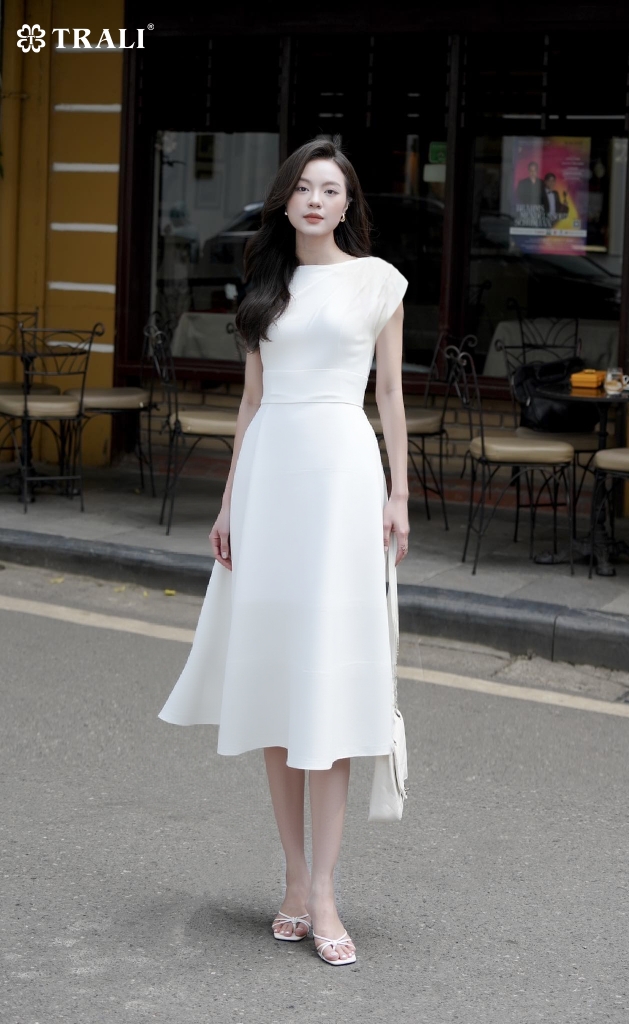 Đầm xòe trắng TRALI 25212 | THỜI TRANG TRALI Đầm xòe trắng TRALI 25212